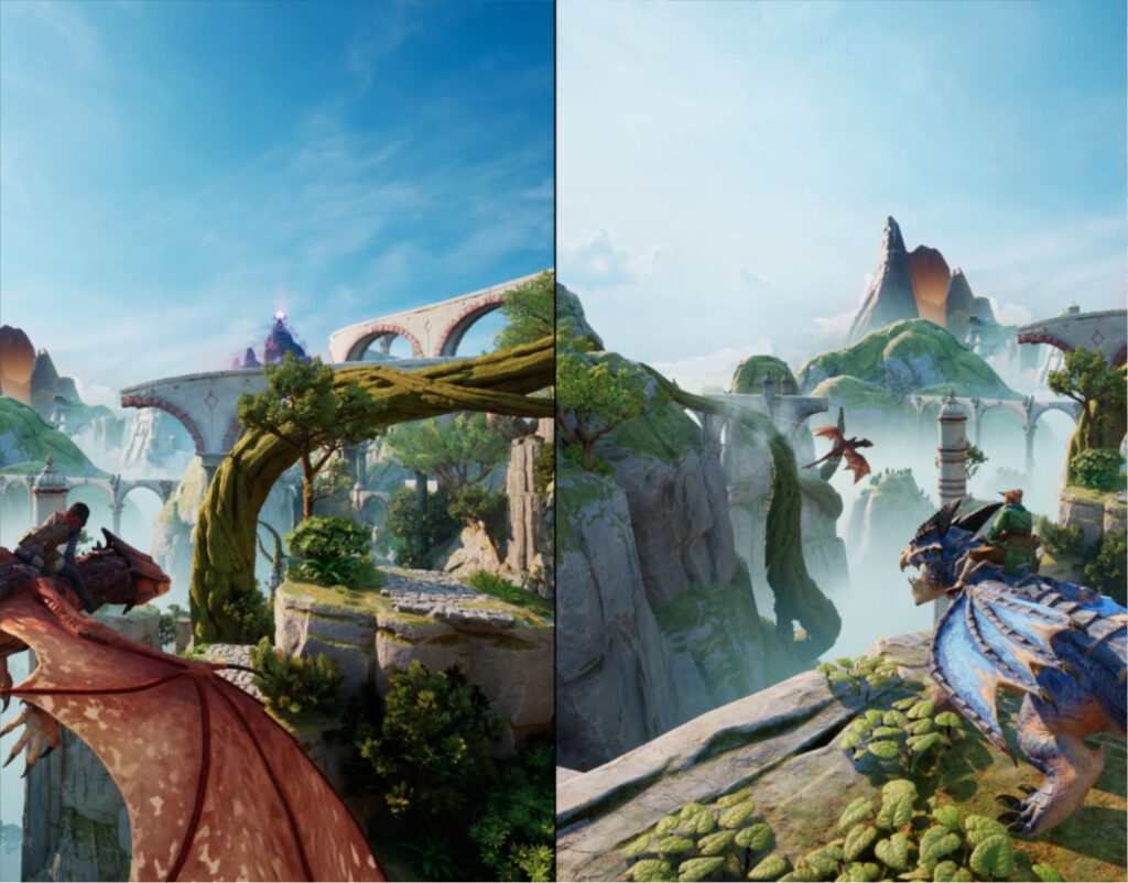 Visually, Split Fiction delivers a striking contrast between its two worlds. Each environment is carefully crafted to reflect its narrative tone, using color, lighting, and design to create distinct atmospheres. The transition between worlds is seamless, enhancing immersion and reinforcing the idea that both realities coexist. The art direction plays a crucial role in storytelling, often conveying emotions and themes without the need for dialogue.