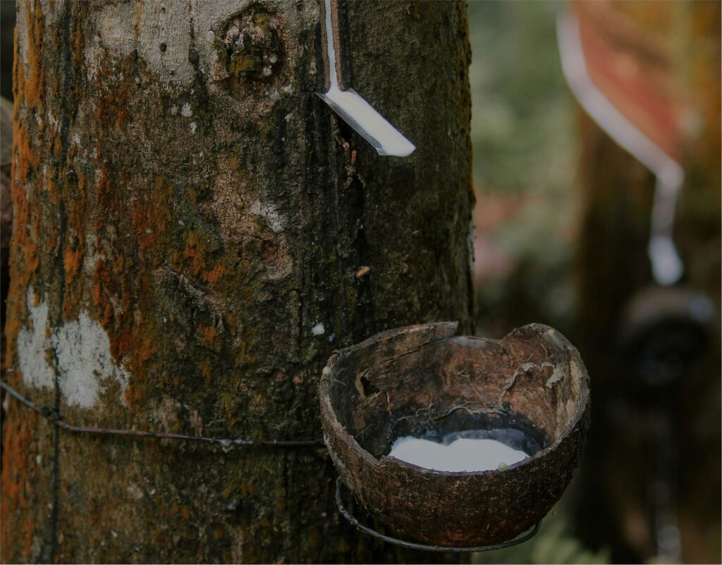Natural rubber is obtained from the latex of rubber trees, mainly the Hevea brasiliensis species. These trees are commonly grown in tropical regions with warm climates and heavy rainfall. Rubber making begins with tapping, a process in which shallow cuts are made on the tree’s bark to collect the milky latex sap. The latex flows into containers and is then transported for processing. Careful tapping ensures that trees remain healthy and productive for many years.